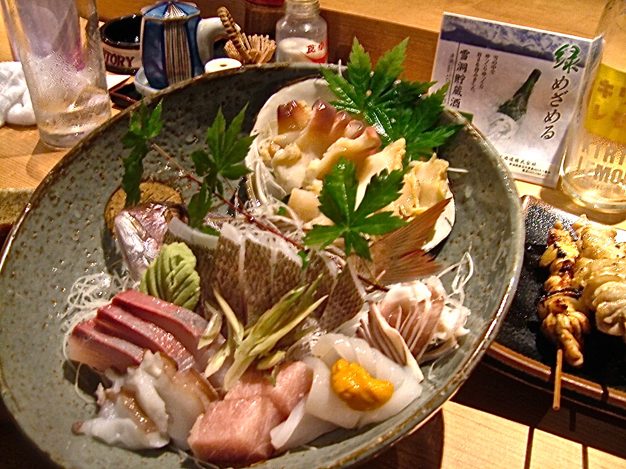 All of the fresh sashimi is locally sourced and melts right on the tongue. The sake I was having is called Midorikawa Shuzo.